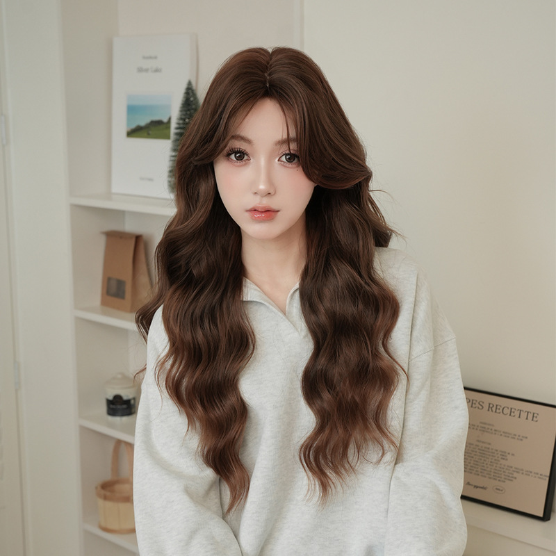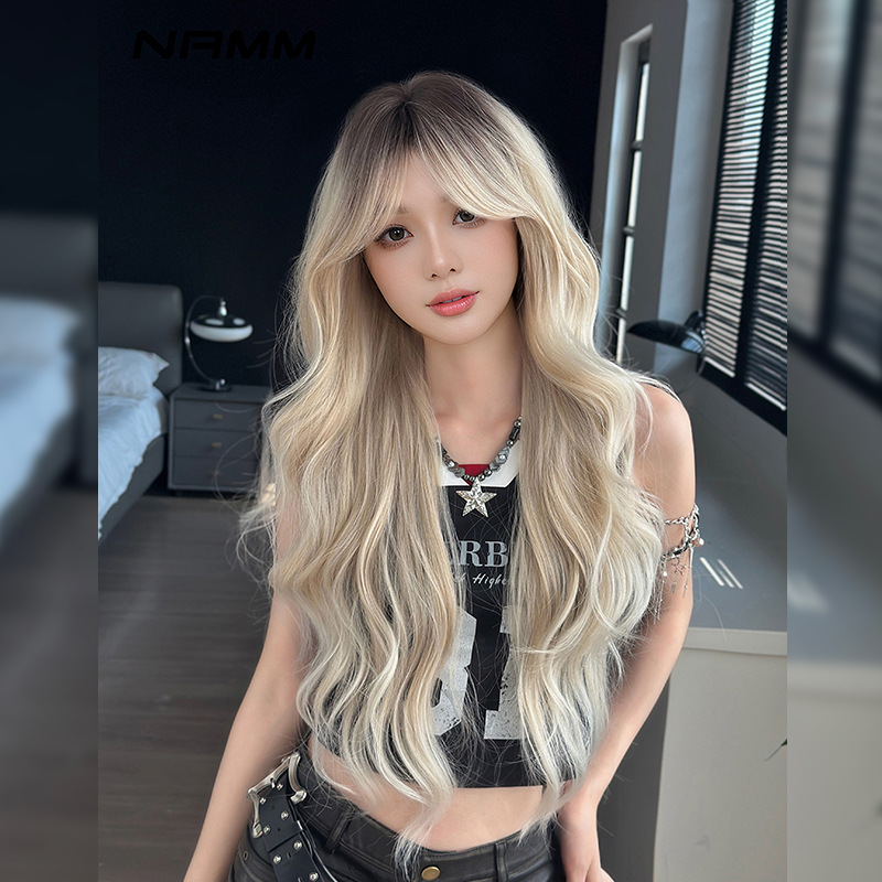 效果,模特儿配戴假发後有用手拨开再抓蓬松制造效果,假发是非常有打理空间的,有时候一顶假发可以变换出不同的效果。