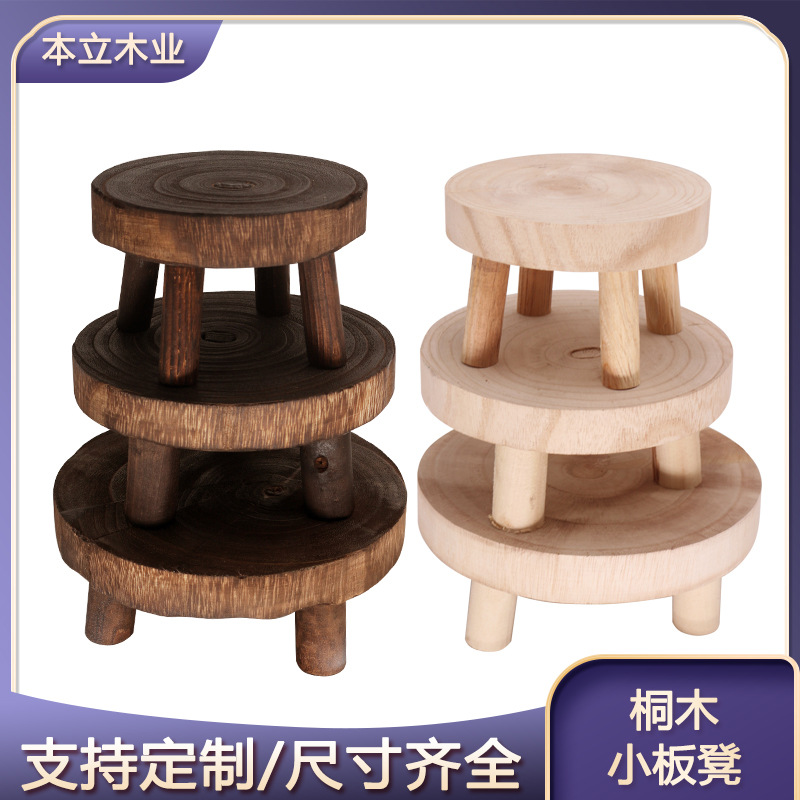 越境焼桐木盆栽台座緑植多肉木製小板腰掛け庭ベランダ多肉置物植木鉢棚