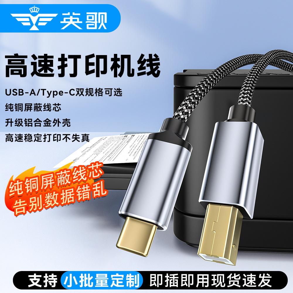 新品Typec/USB转方口打印机线 适用手机电脑笔记本平板打印机线