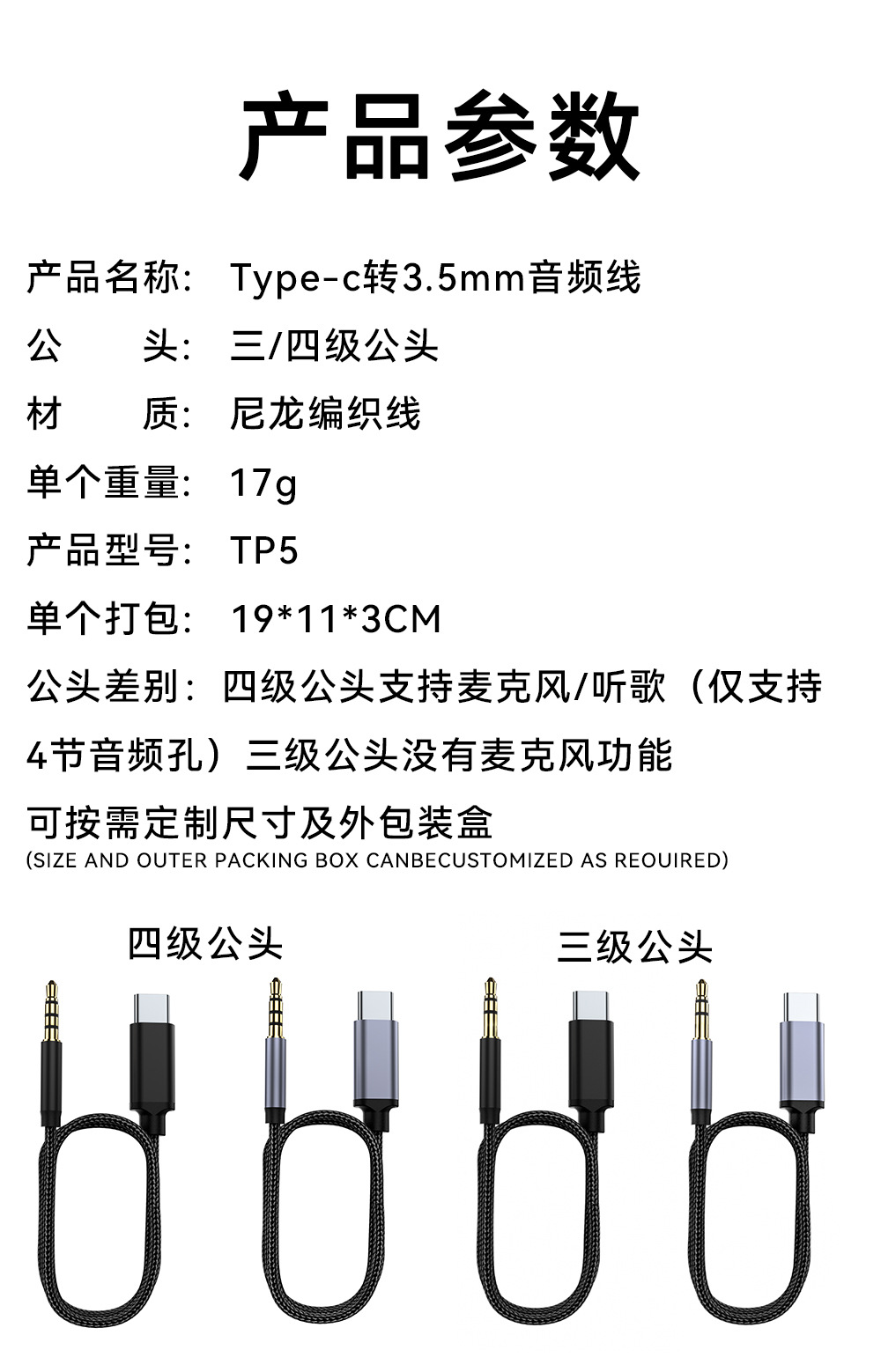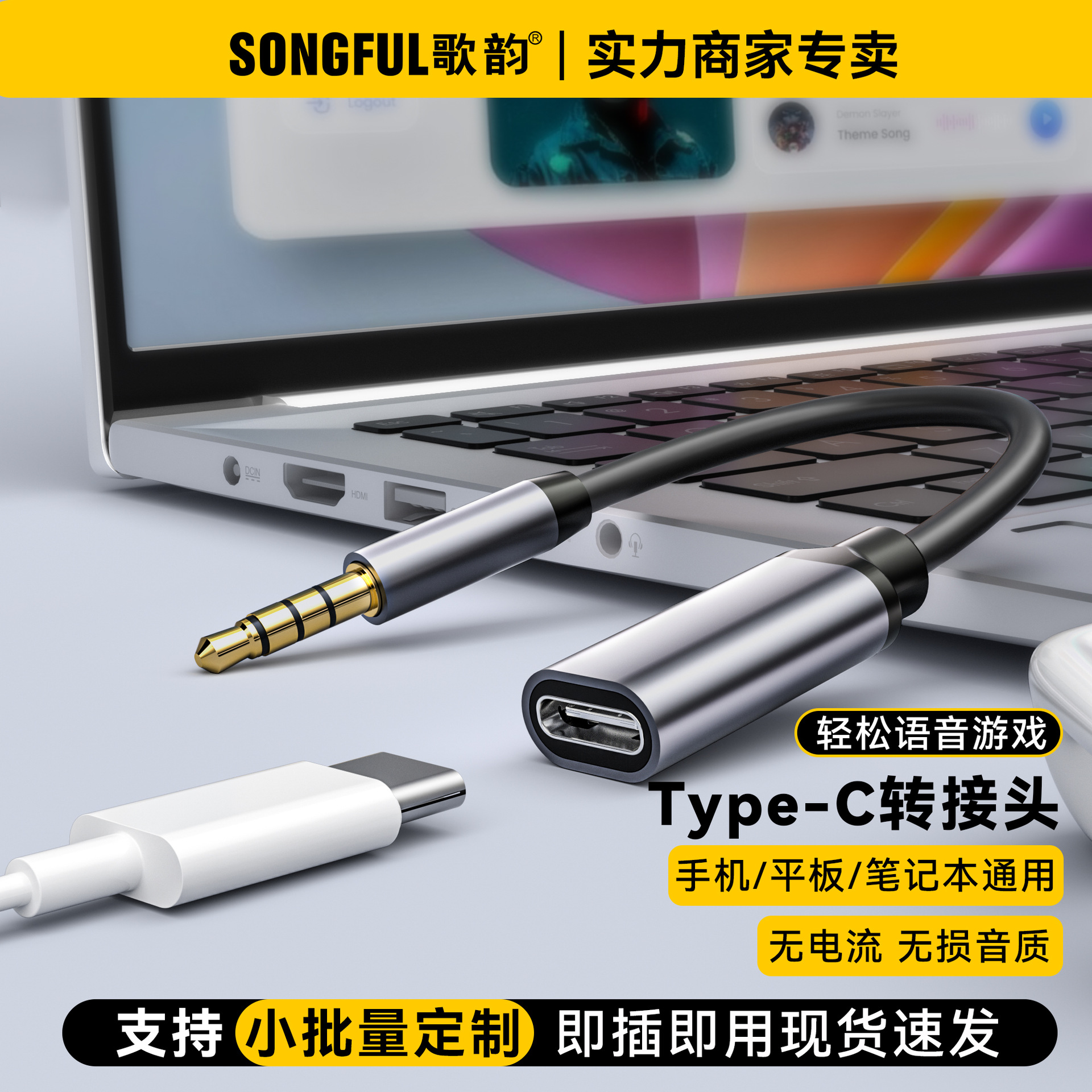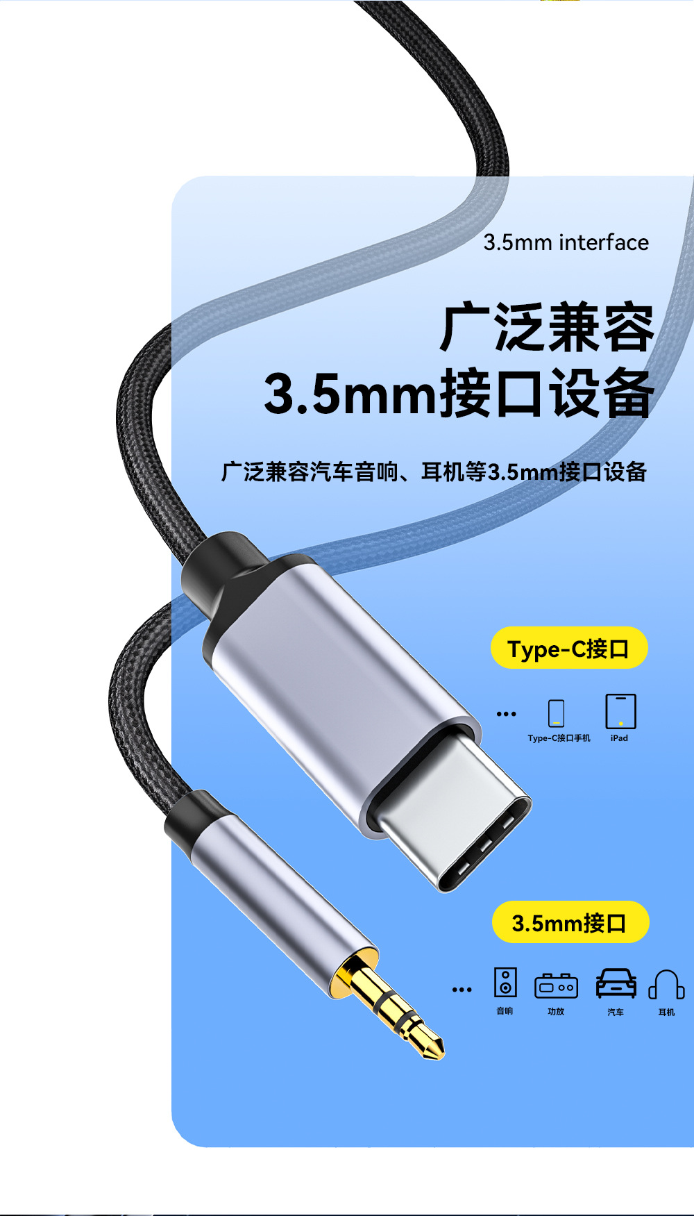 新品3.5转typec母座音频适用于平板手机车载typec耳机音频转接线