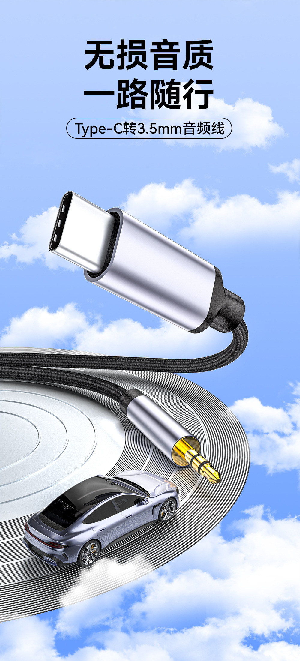 Typec - 3.5mm オーディオケーブルは、携帯電話をカーオーディオアンプヘッドセットに接続するのに適しています。