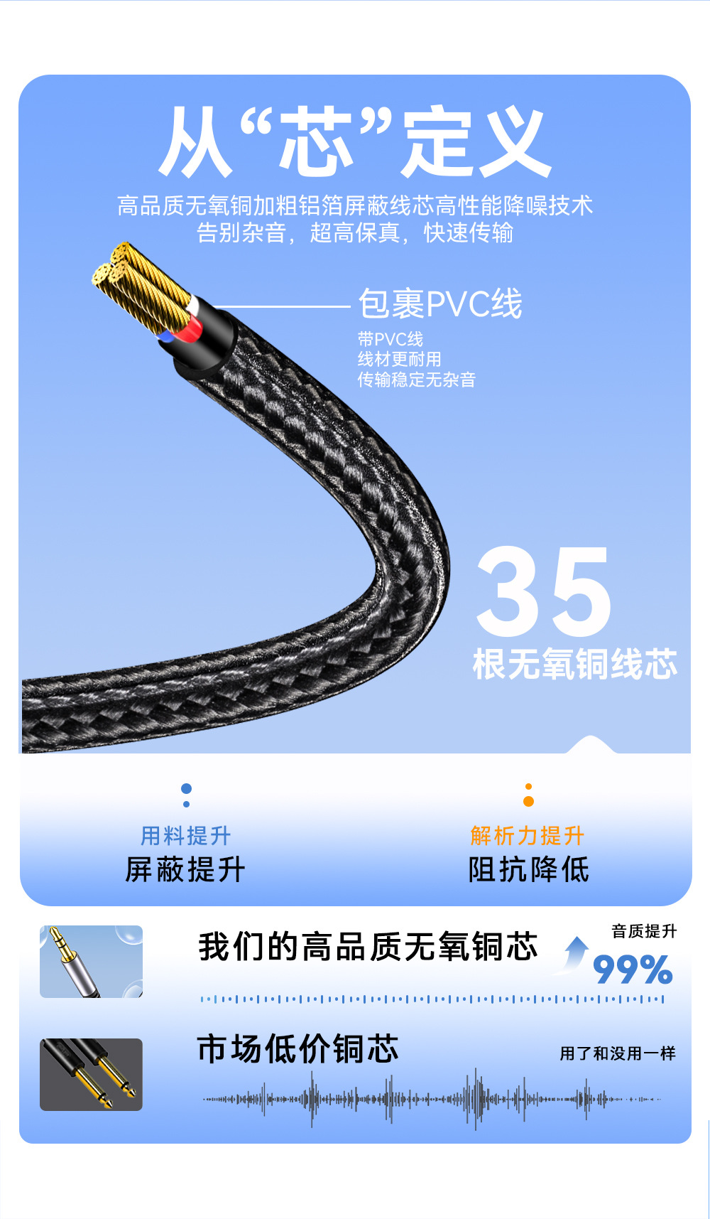 2025新款同轴音频线电视连音响功放 采用尼龙编制线纯铜3.5音频线