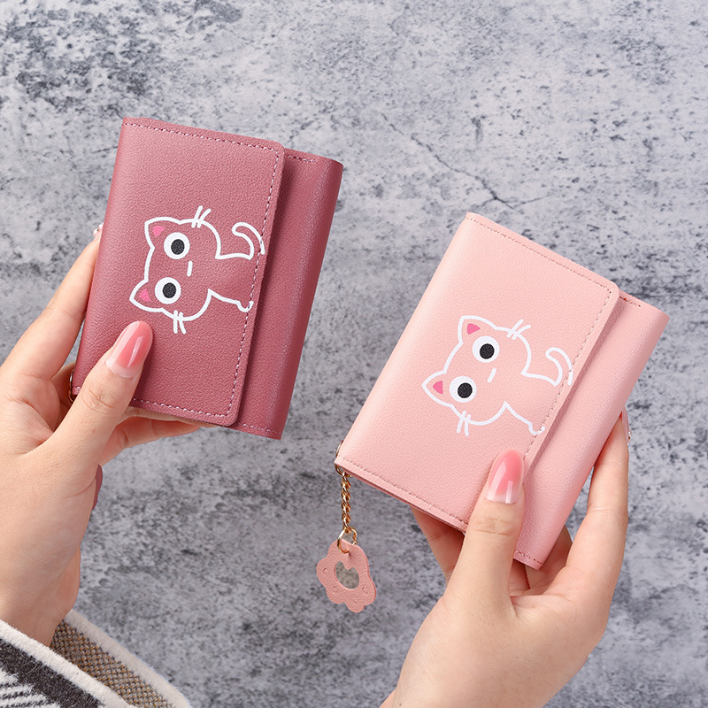 2022新型アニメかわいいミニ財布女子三つ折り猫女子小カードバッグ財布女子