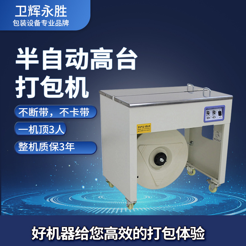 半自动打包机打包带收紧一体捆扎纸箱打包双电机高台热熔打包机