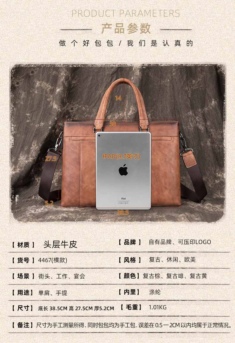 新商品の復古バッグ牛革男性ブリーフケース男性本革男性カバン斜めショルダーバッグ男性ショルダーバッグ男性ハンドバッグ