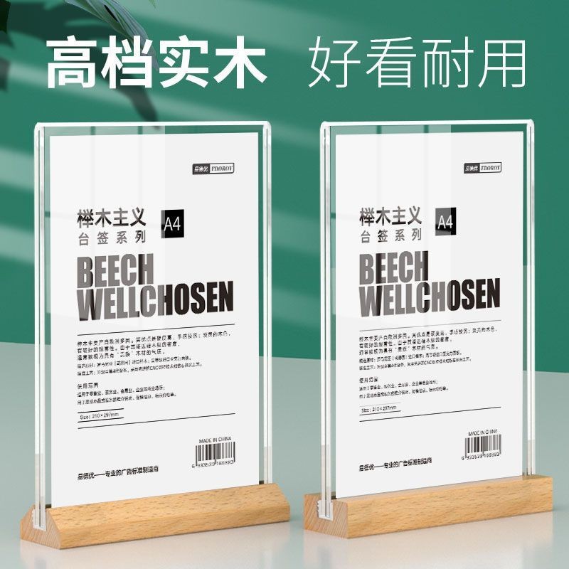跨境A4亚克力台卡A5台签双面桌牌加厚A6餐牌价格牌木质底座展示牌
