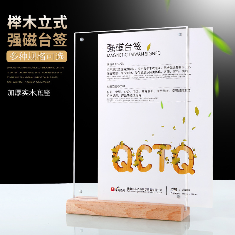 A4榉木立式强磁台签定制展示牌餐厅亚克力台卡架双面T型桌签立牌
