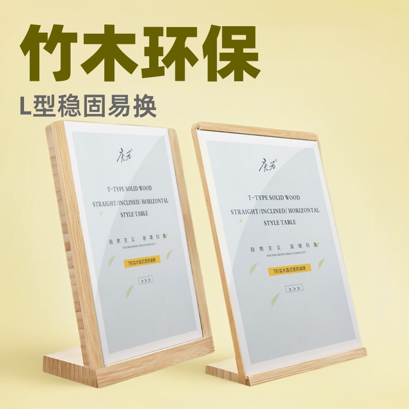 L型竹製磁気テーブルカード アクリル卓上サイン A4メニュー アクリルテーブルサイン 竹製L型スタンドディスプレイ