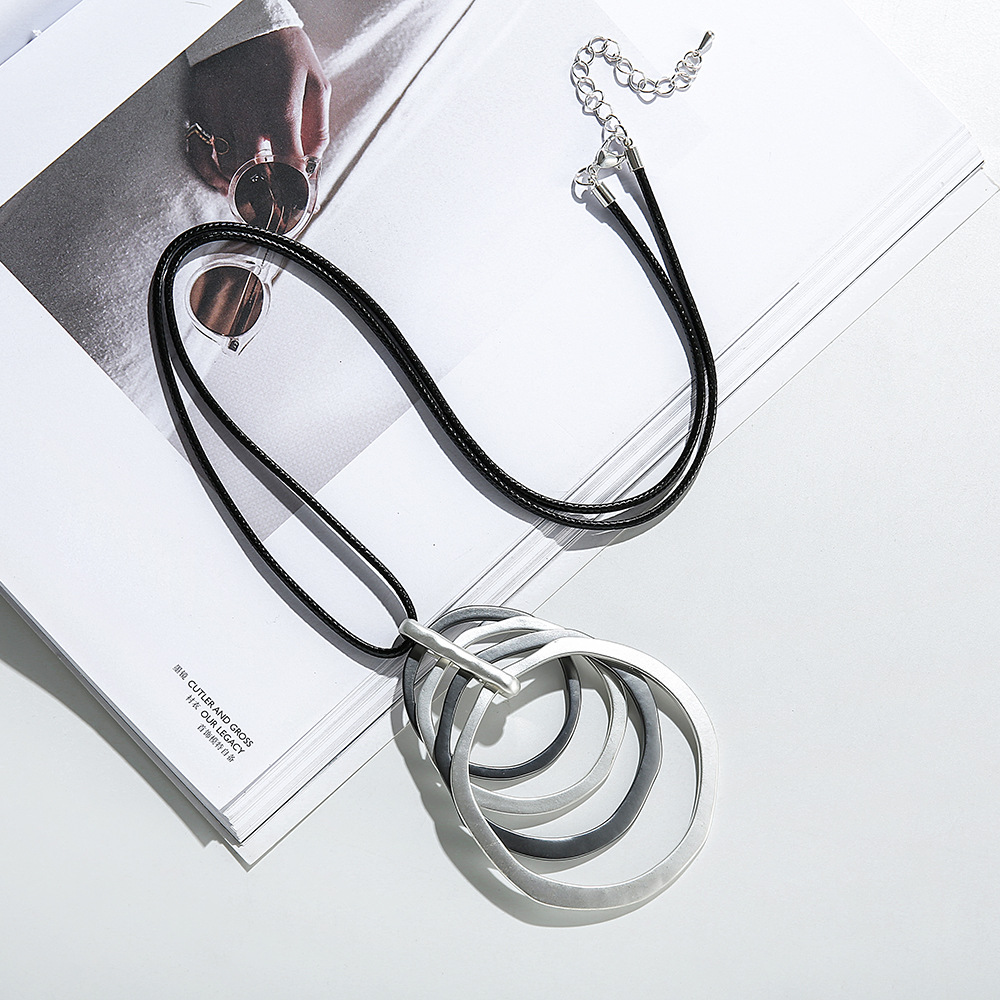 国境を越えた宝飾品アマゾンの起爆ネックレス秋冬欧米衝突色幾何楕円形金属ペンダント女性セーターチェーン