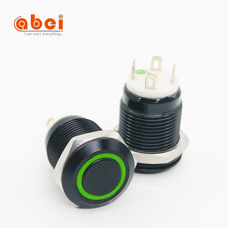 12mmランプ付きボタンスイッチ自己リセット酸化黒金属ボタンスイッチ円形起動防水スイッチ12V