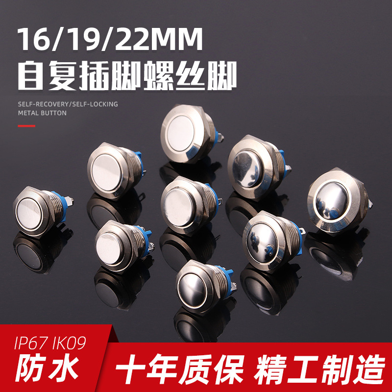 金属ボタンスイッチ12/16/19/22mmセルフリセットボタンネジ足が常に点灯して起動します