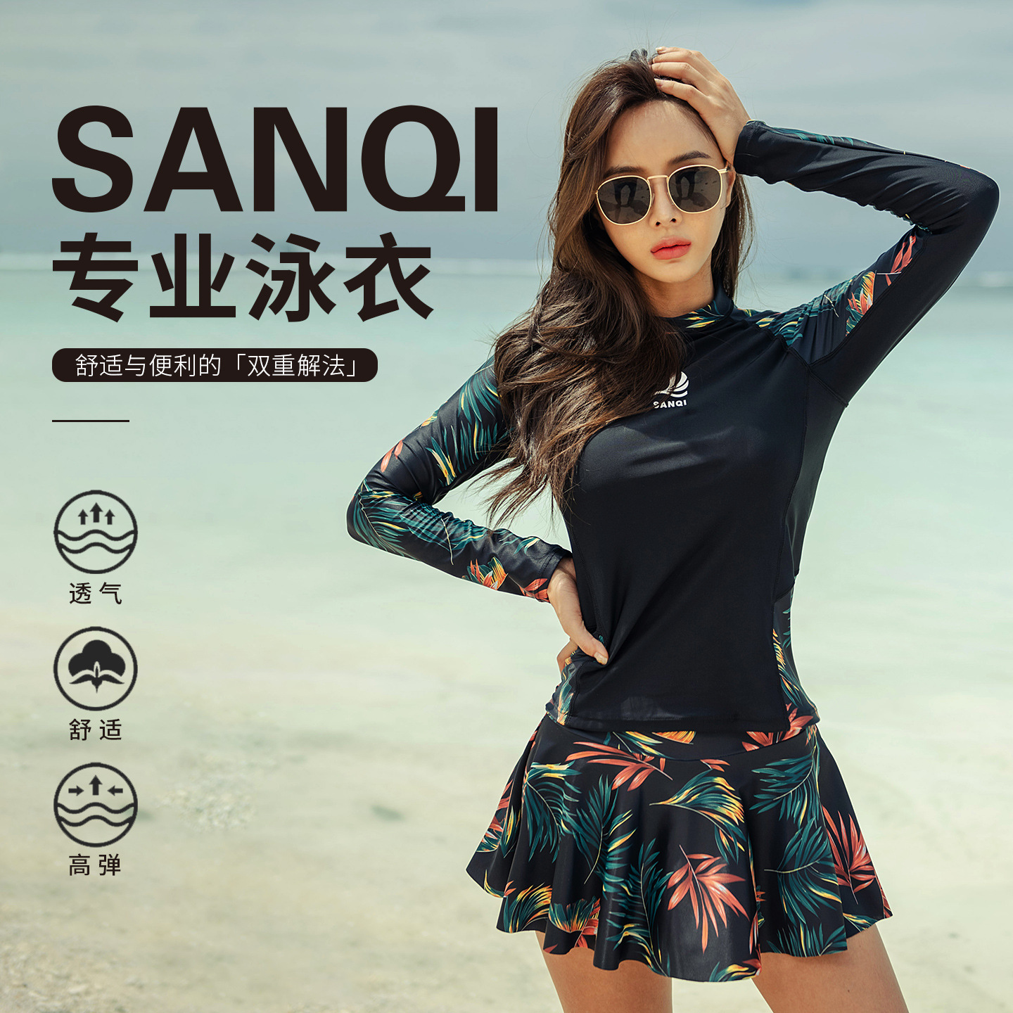 Sanqi Xiaoxiangfeng スプリット水着女性の 2023 新しい長袖カバーアップ 3 点セット温泉休暇セクシーなビキニ