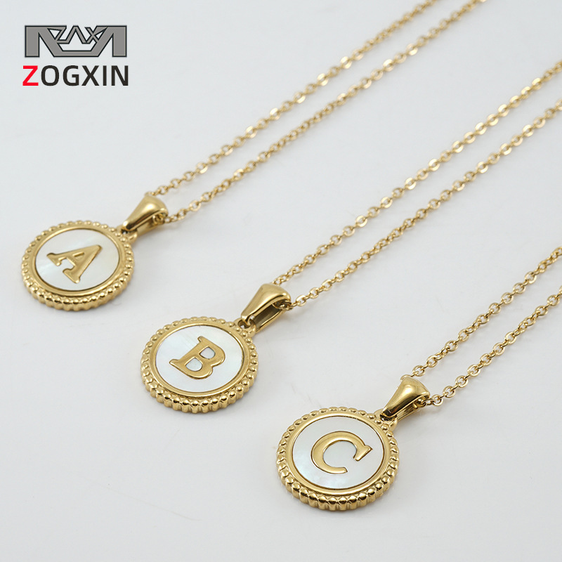 クロスボーダー18k金ステンレスアルファベットネックレス女性欧米天然貝殻チタン鋼26アルファベットペンダントアクセサリー卸売り