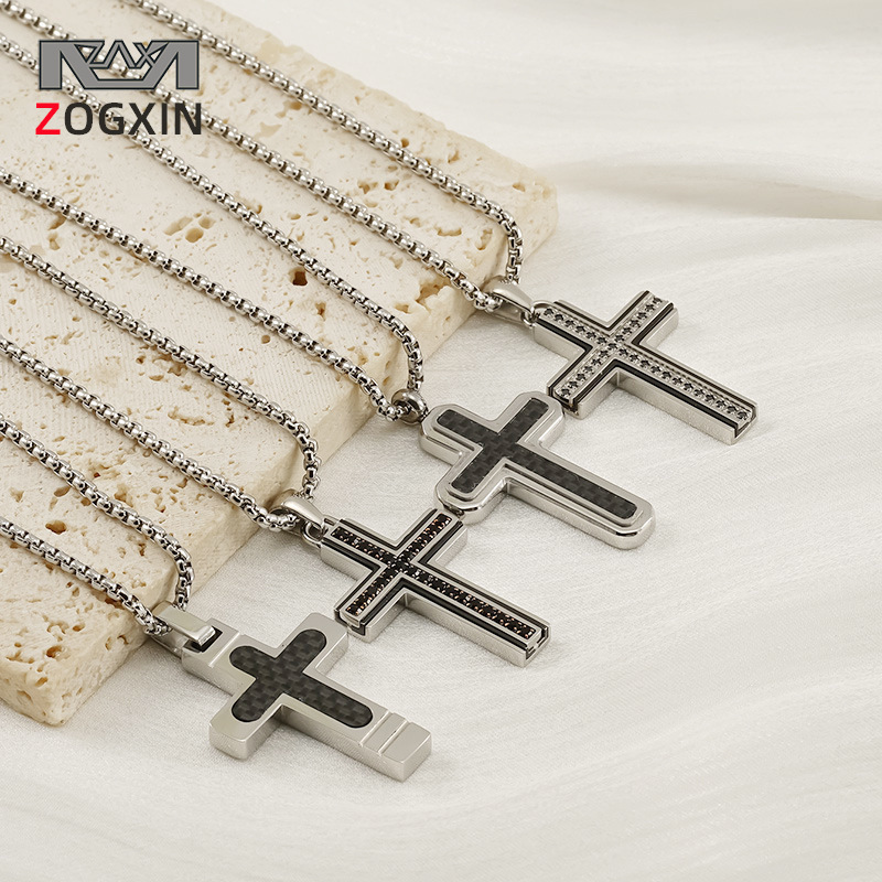 欧米のシンプルでファッション的なチタン鋼には、男女の高級感のあるクロスネックレスが含まれています。
