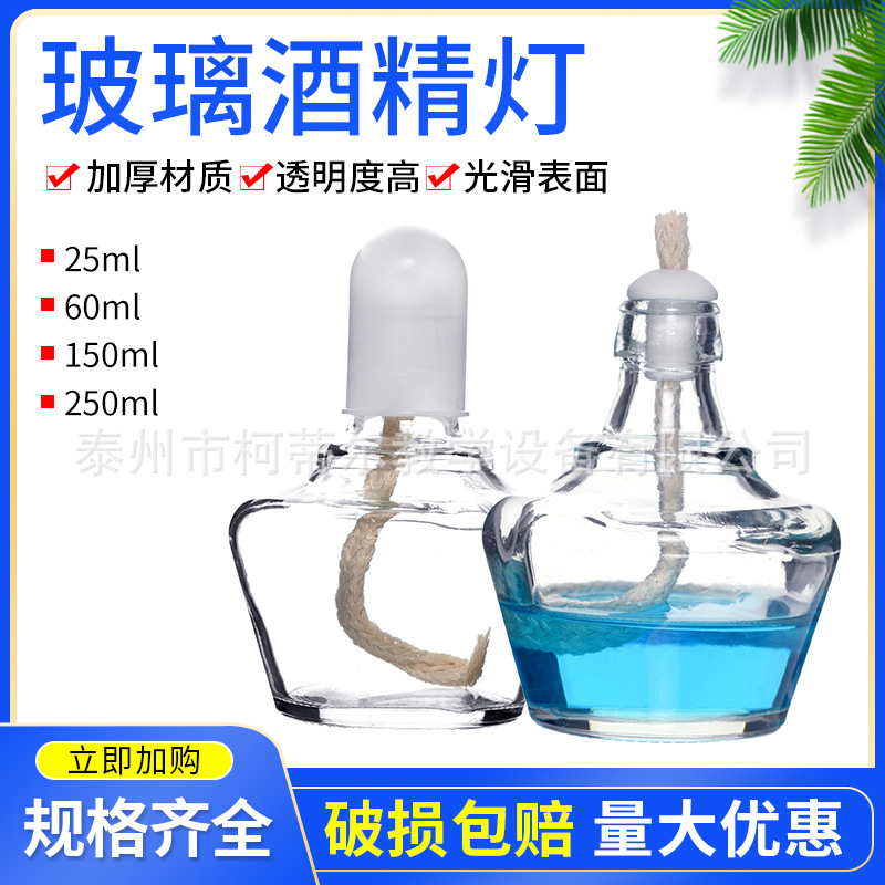 アルコールランプ60/150/250ml厚さガラス化学実験加熱器材芯付きランプキャップセット