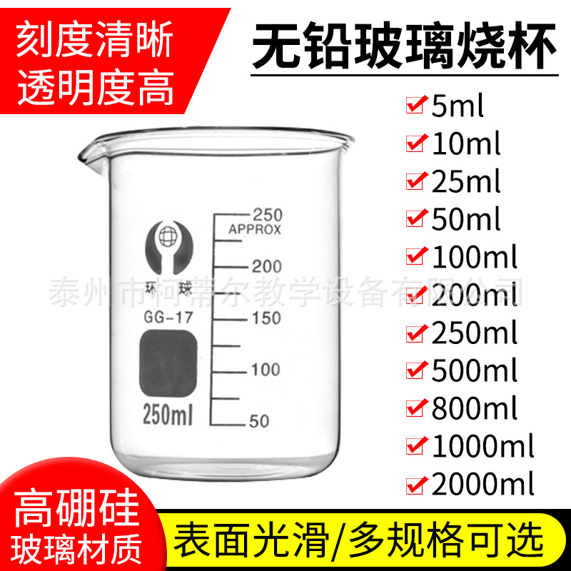 ビーカーガラスビーカー50ml 100ml 250ml 500mlガラス計量カップ化学実験室高ホウ素シリコンビーカー
