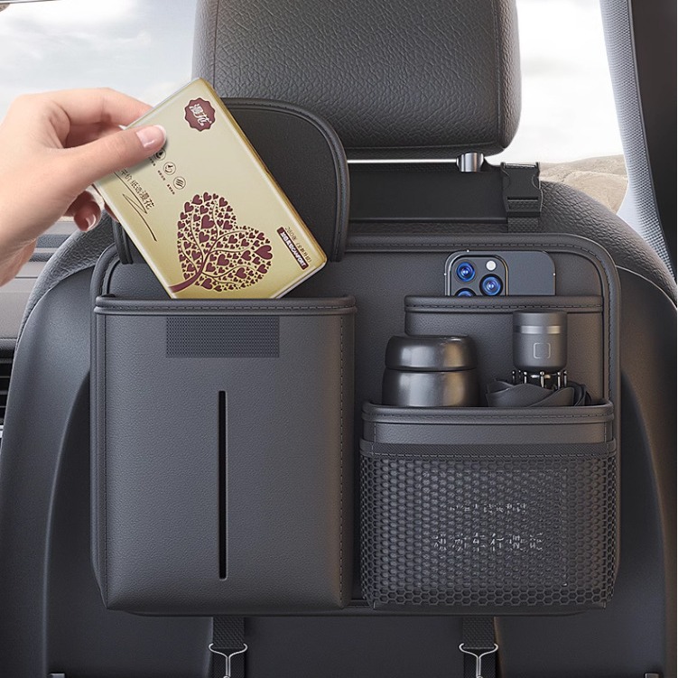 亚马逊爆款汽车后座收纳袋车载垃圾桶多功能餐桌杯支架椅背防踢垫