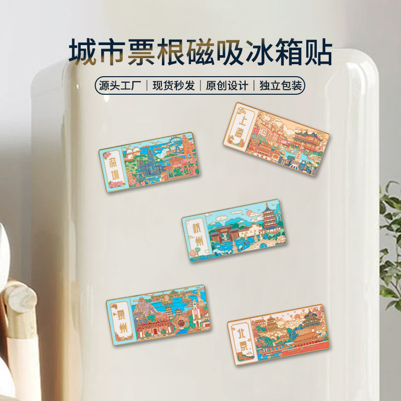 工場直販スポットチケット冷蔵庫マグネット金属磁気吸引杭州上海北京深セン泉州文化クリエイティブギフト