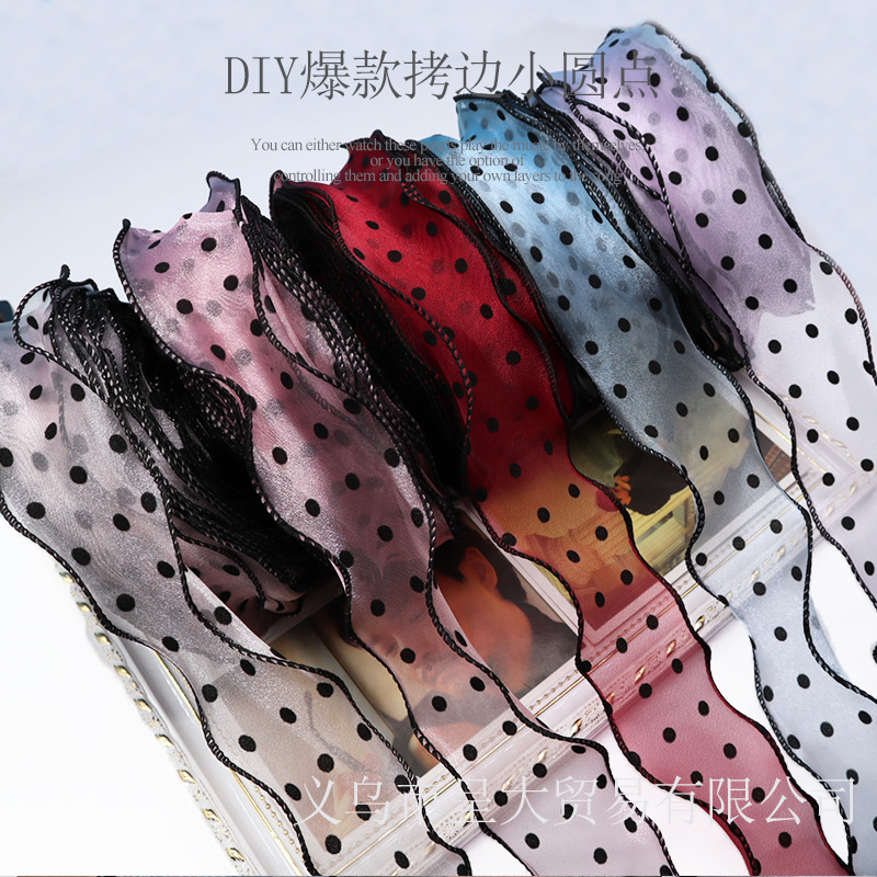 新商品の植毛波点波拷問エッジ糸diy手作りの蝶結びのリボンの縁のリボンの部品の卸売り