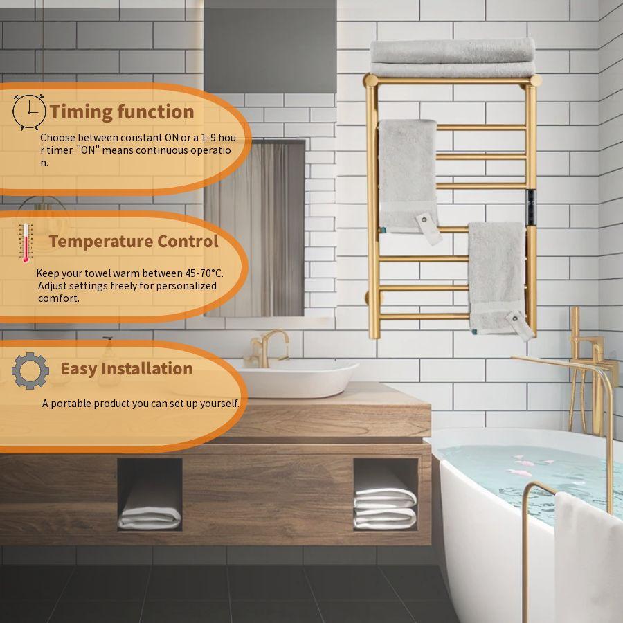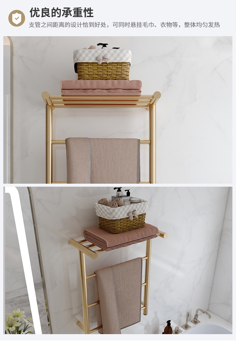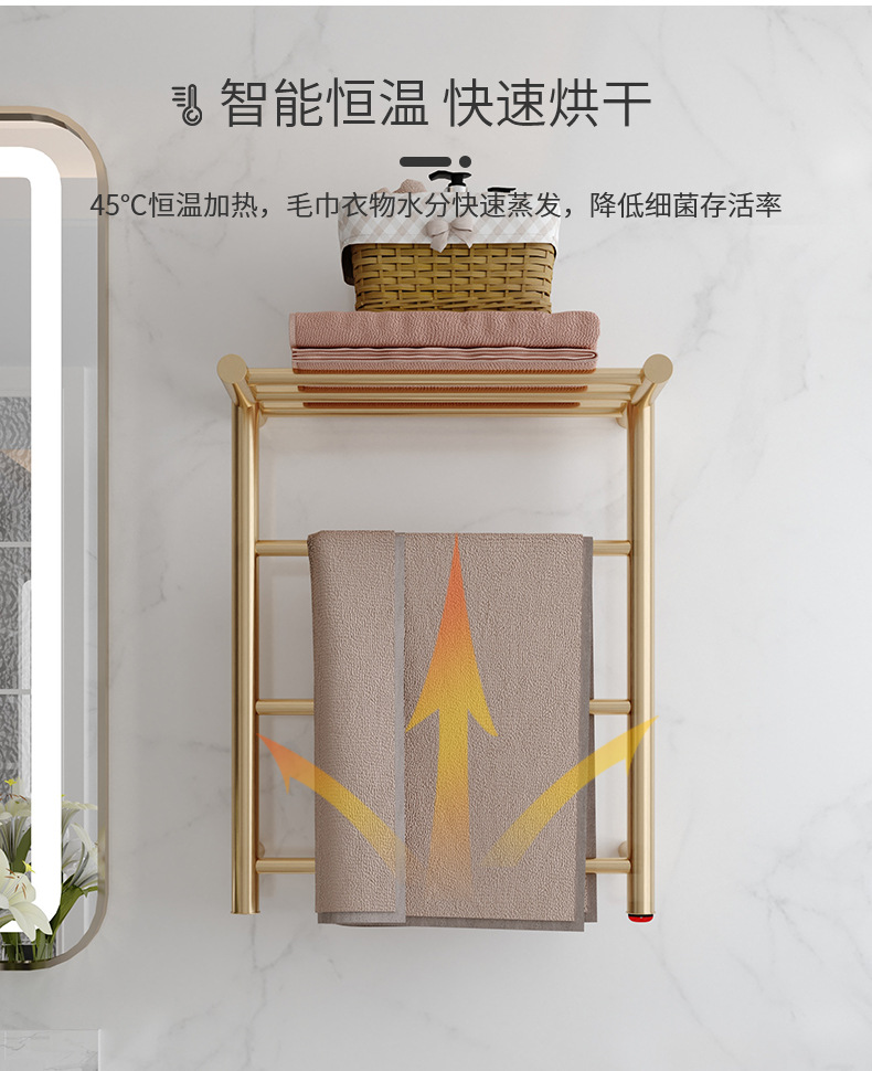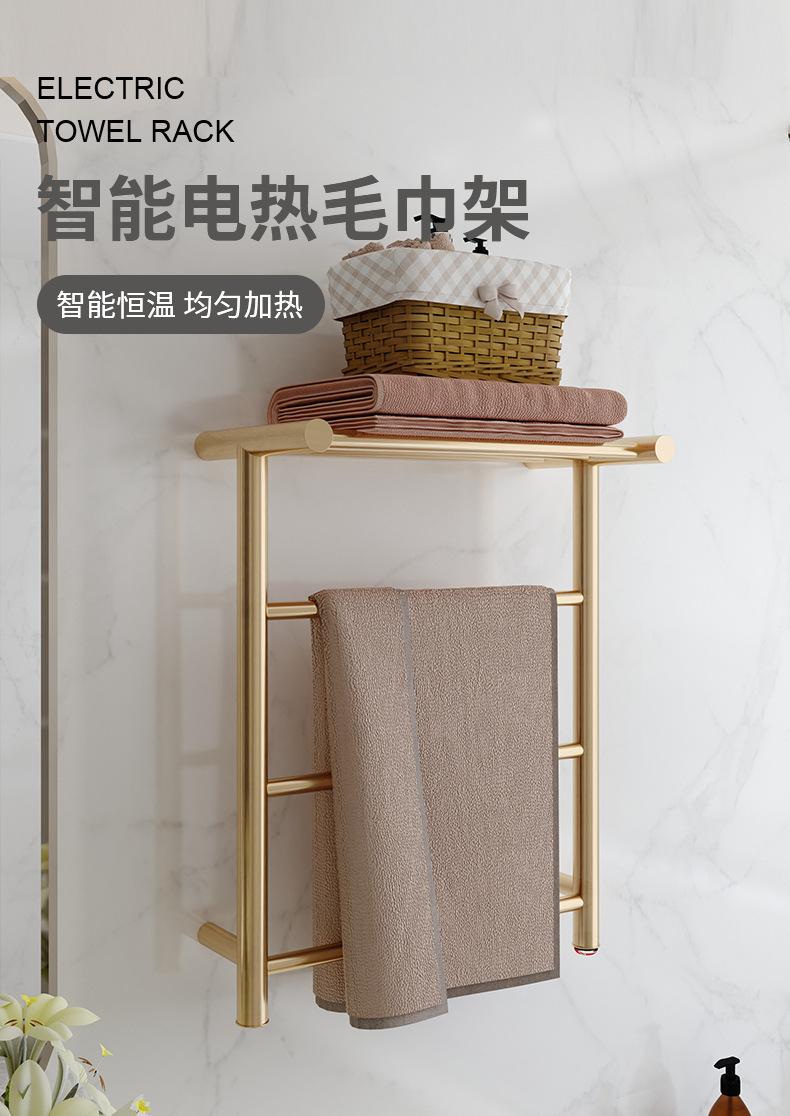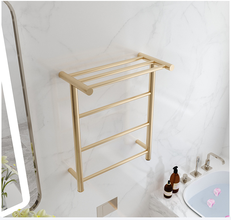 国境を越えた卸売インテリジェント恒温電気タオルラック浴室タオルバーゴールデンステンレス鋼加熱タオルラック工場