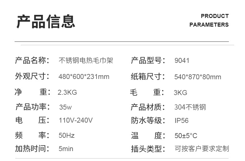 OZON俄罗斯欧规卫生间浴巾智能304不锈钢电热毛巾杆加热毛巾架厂