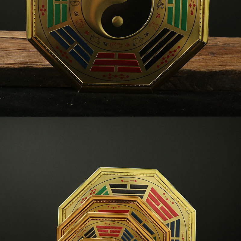 金辺太極八卦鏡置物色絵陰陽魚八卦合金八卦鏡九宮平面陰陽鏡ペンダント