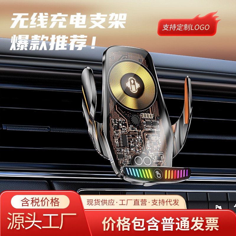 源工場車載携帯電話スタンド赤外線自動開閉15w無線充電カラーロゴ自動車用品