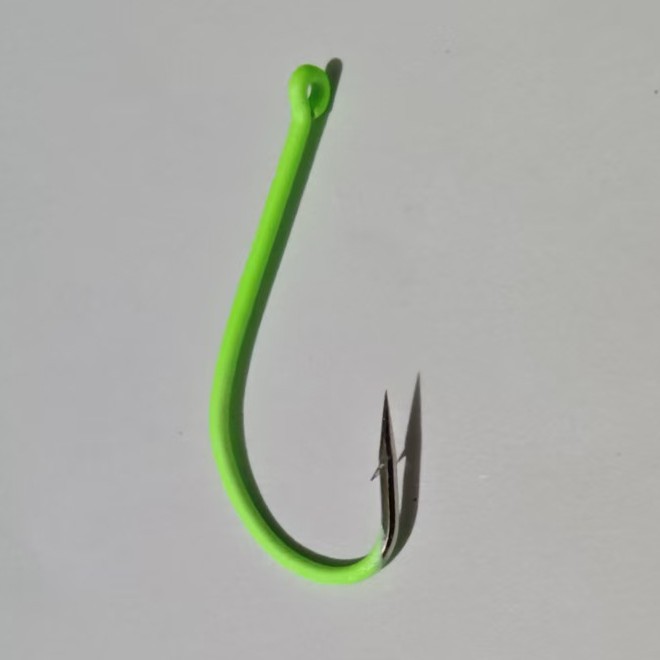 丸世鱼钩:歪嘴设计,不易跑鱼,平打钩身,拉力更强,钩柄长,钩尖锋利