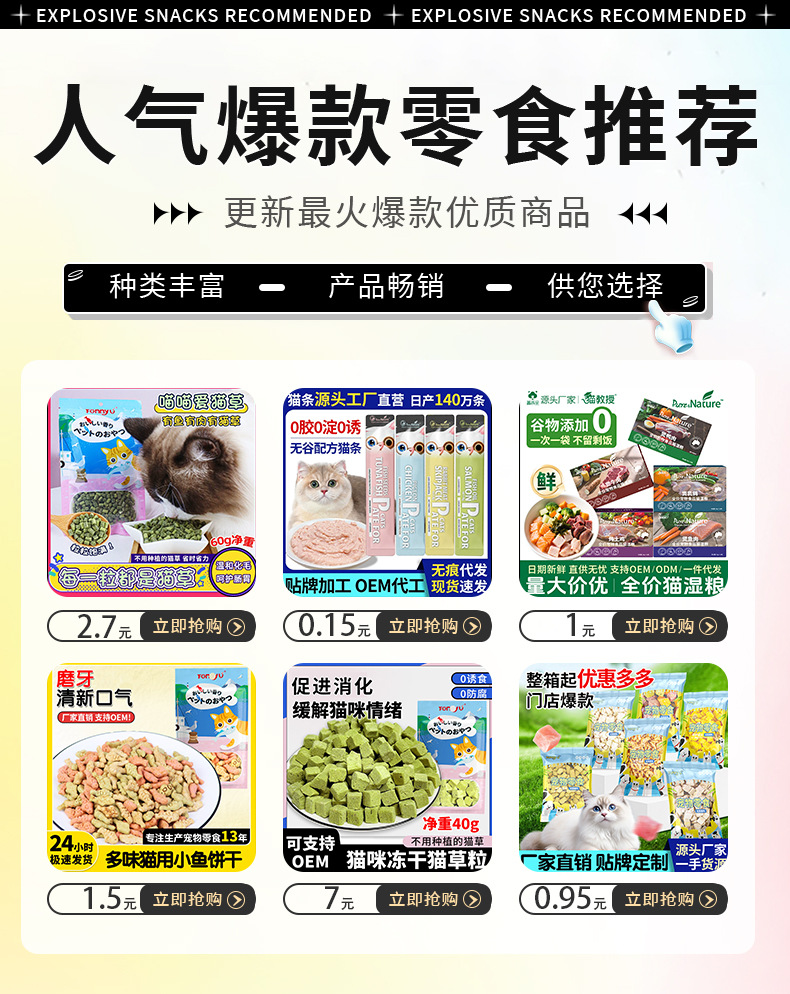 もとの工場の商品の供給源はペットの食品の猫の間食の鶏肉のまぐろの猫のミントを卸売りして歯をきれいにします。