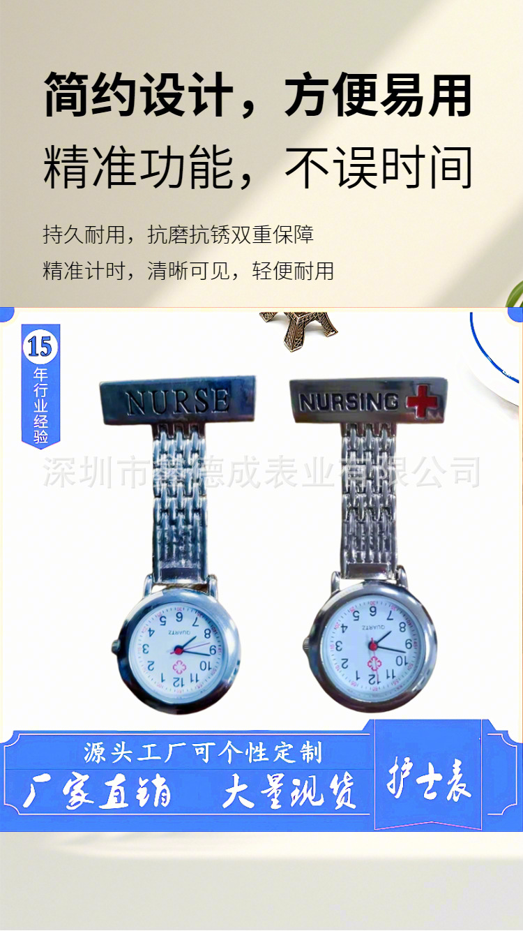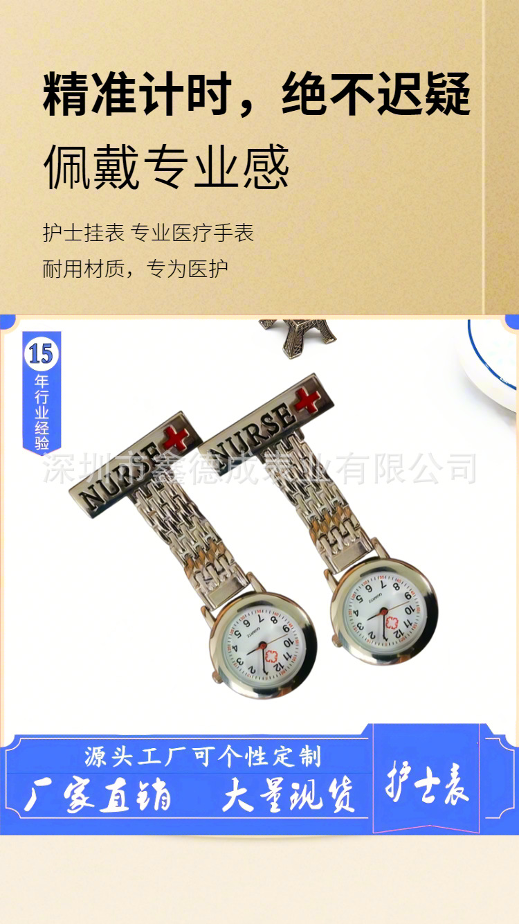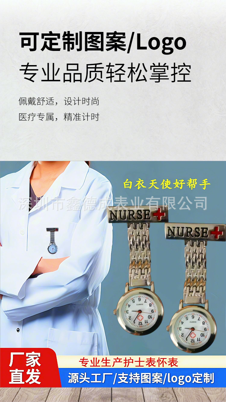 スポット工場直売亜鉛合金長方牌看護師表夜光針笑顔看護師掛け表胸表懐中時計