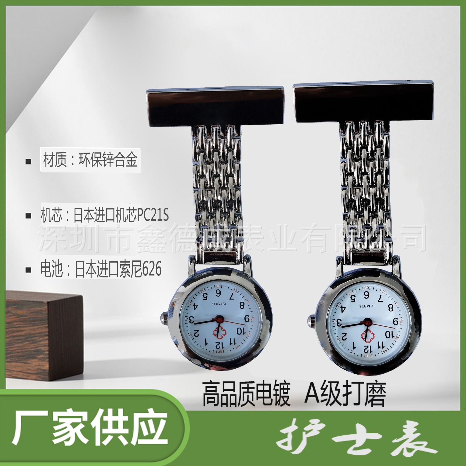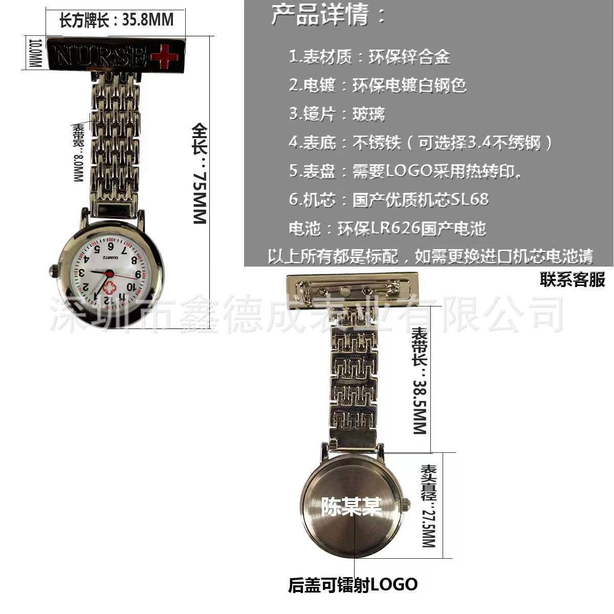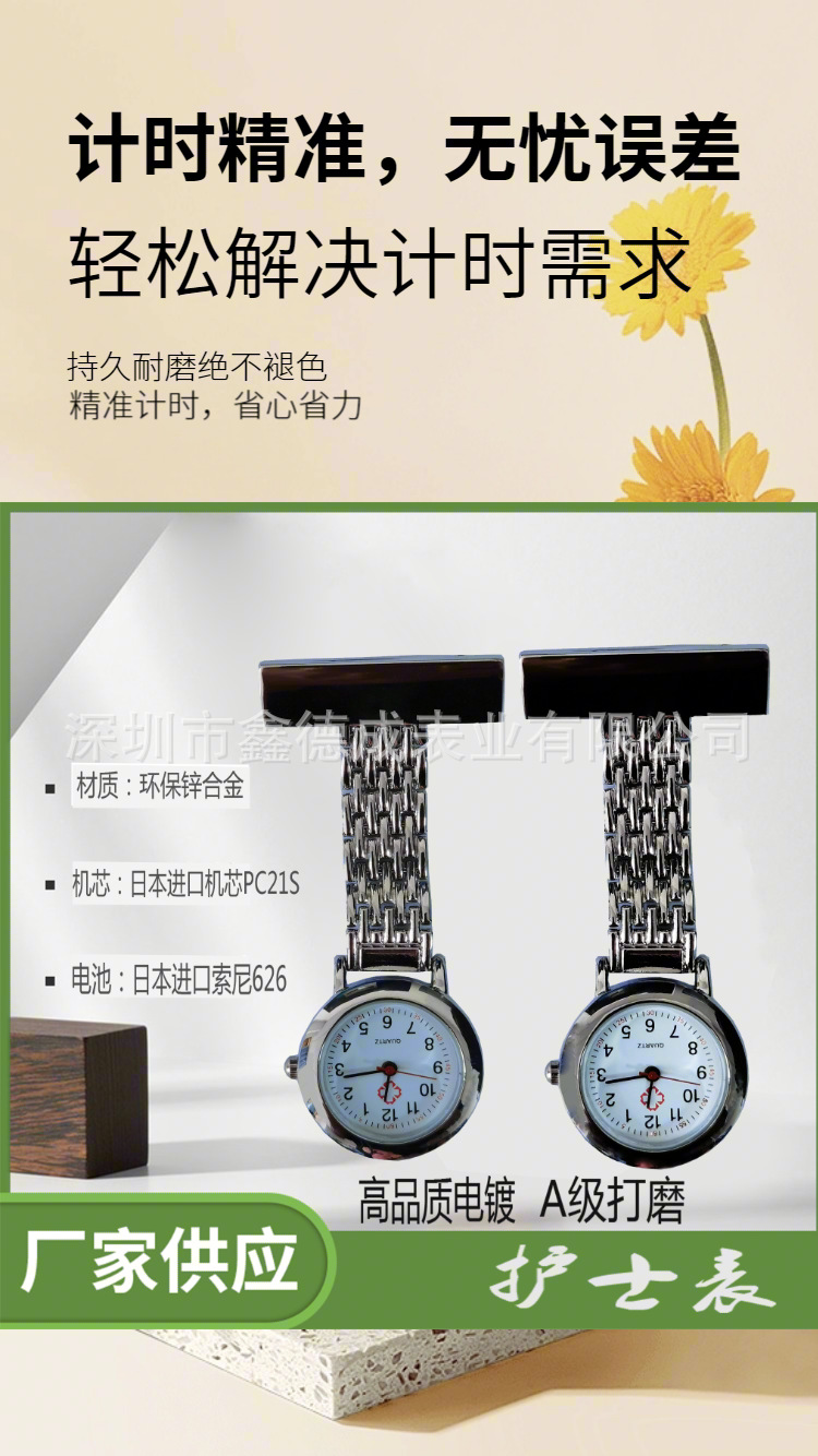 スポット工場直売亜鉛合金長方牌看護師表夜光針笑顔看護師掛け表胸表懐中時計