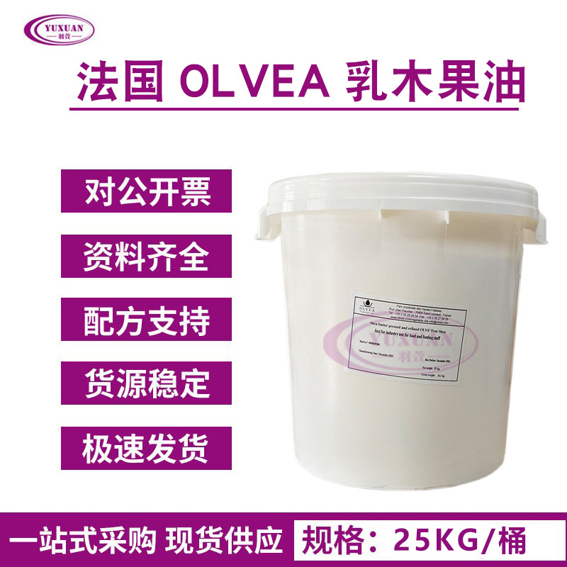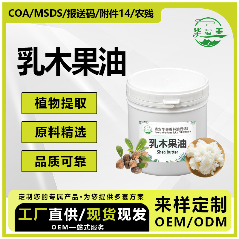 乳木果油也称牛油树脂,冷榨制成,是天然植物源固体油脂;