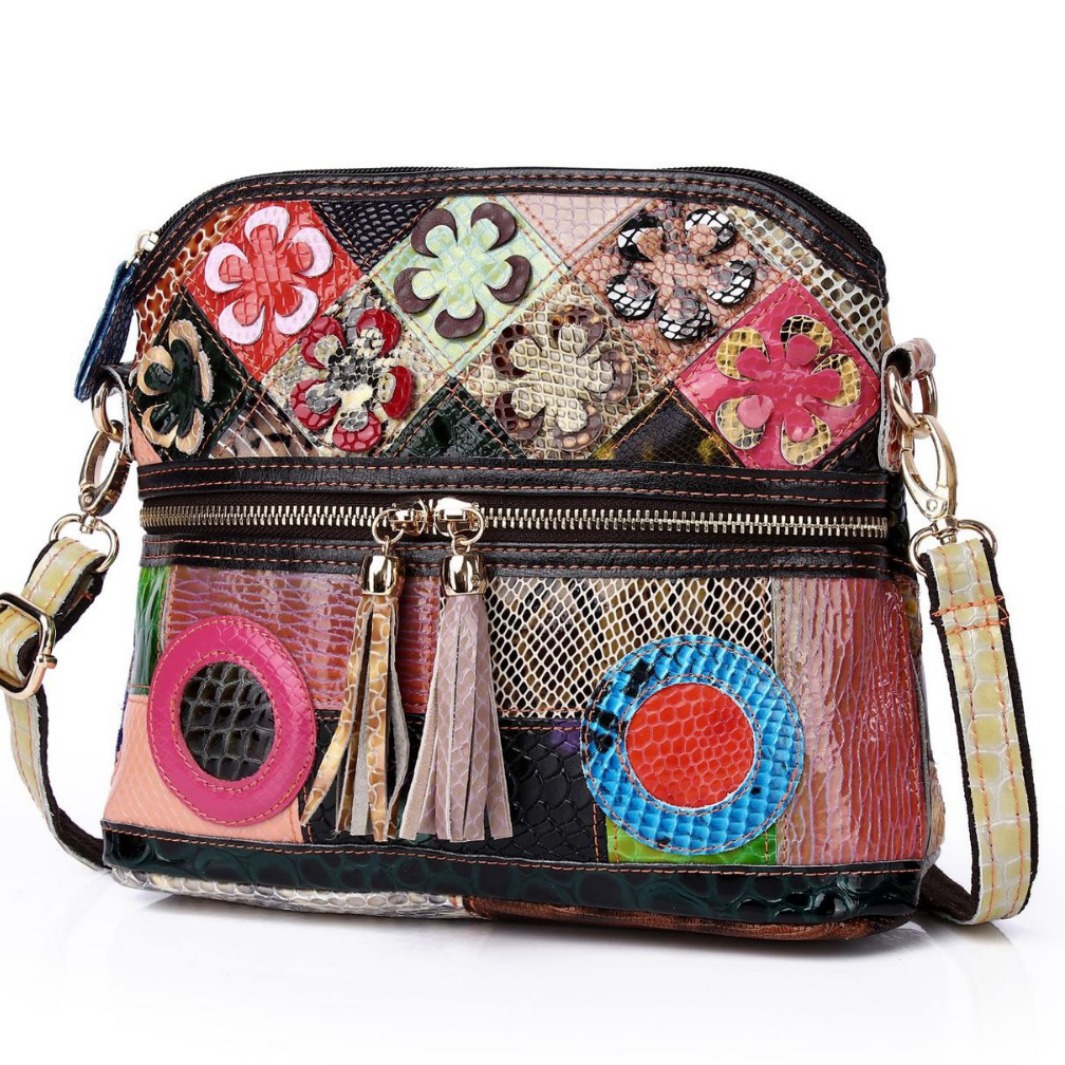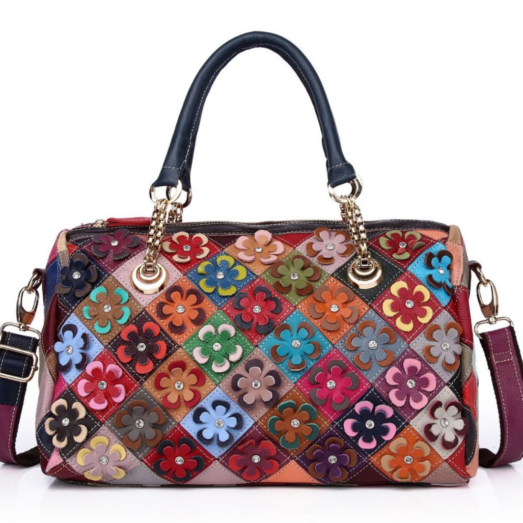 真皮女包新款民族风女式手提包个性拼接单肩女包潮厂家直销
