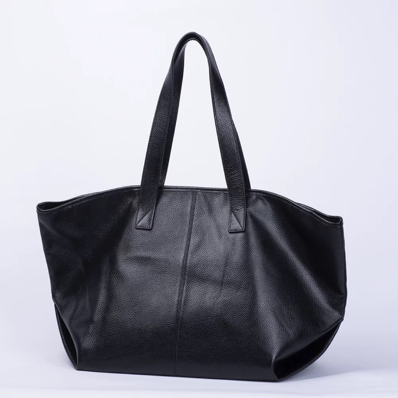 本革第一層牛革ピュアブラックソフトカジュアル大型バッグヨーロッパとアメリカのファッション多用途通勤バッグシングルショルダーレディースバッグ