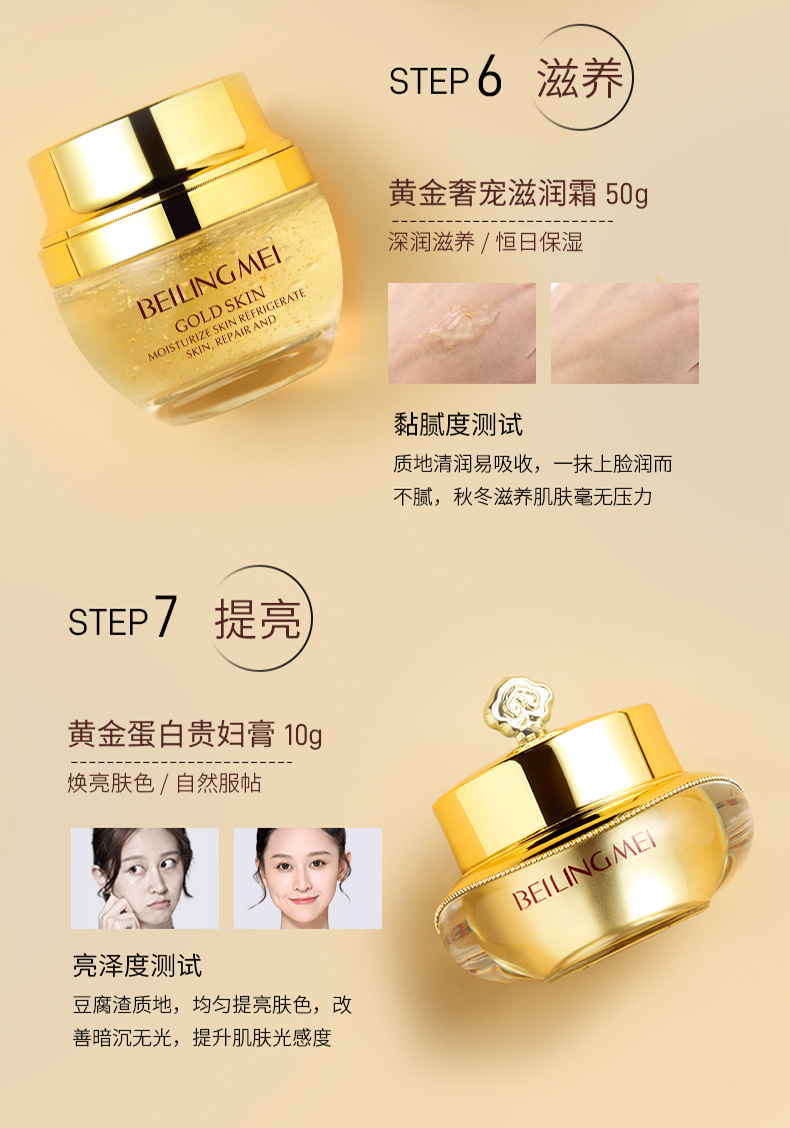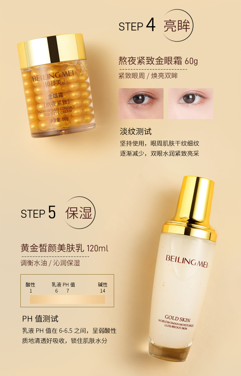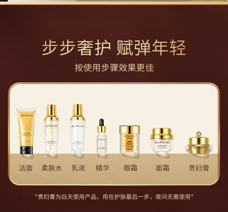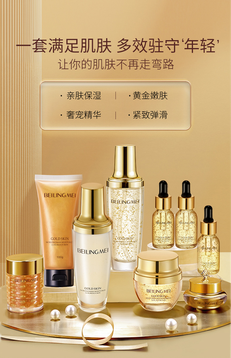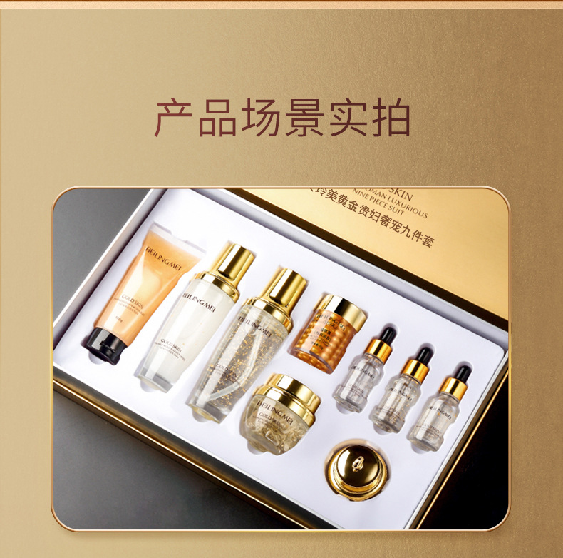 貝玲美の至高の貴重な黄金の魚のしわの9セットは水を補って保湿して潤いが明るくて繊細な肌を持ちます。