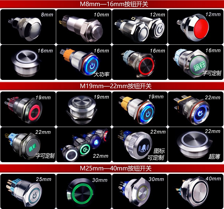 16/19/22mm金属ボタンスイッチ適用超薄型保護カバーのみ適用フラットヘッドタイプスイッチなし