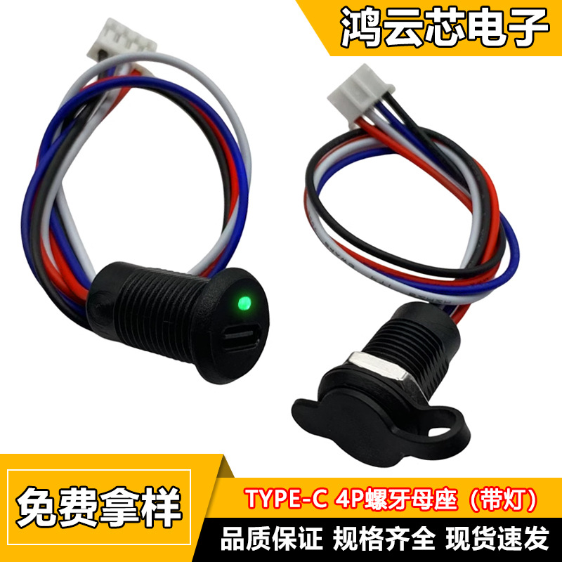 USB3.1Type-C母座4芯注入バンドロック外ねじ付き防水type c充電発光データインターフェイス
