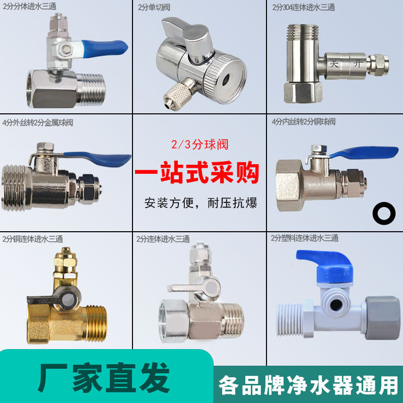 浄水器入水三方ボールバルブスイッチ浄水器蛇口継手共通4分回転3/2分バルブ部品