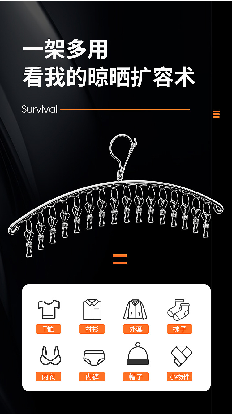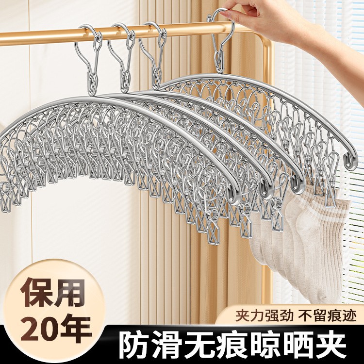 多クリップハンガー家庭用ステンレス干し靴下棚多機能防風下着寮神器フック靴下棚
