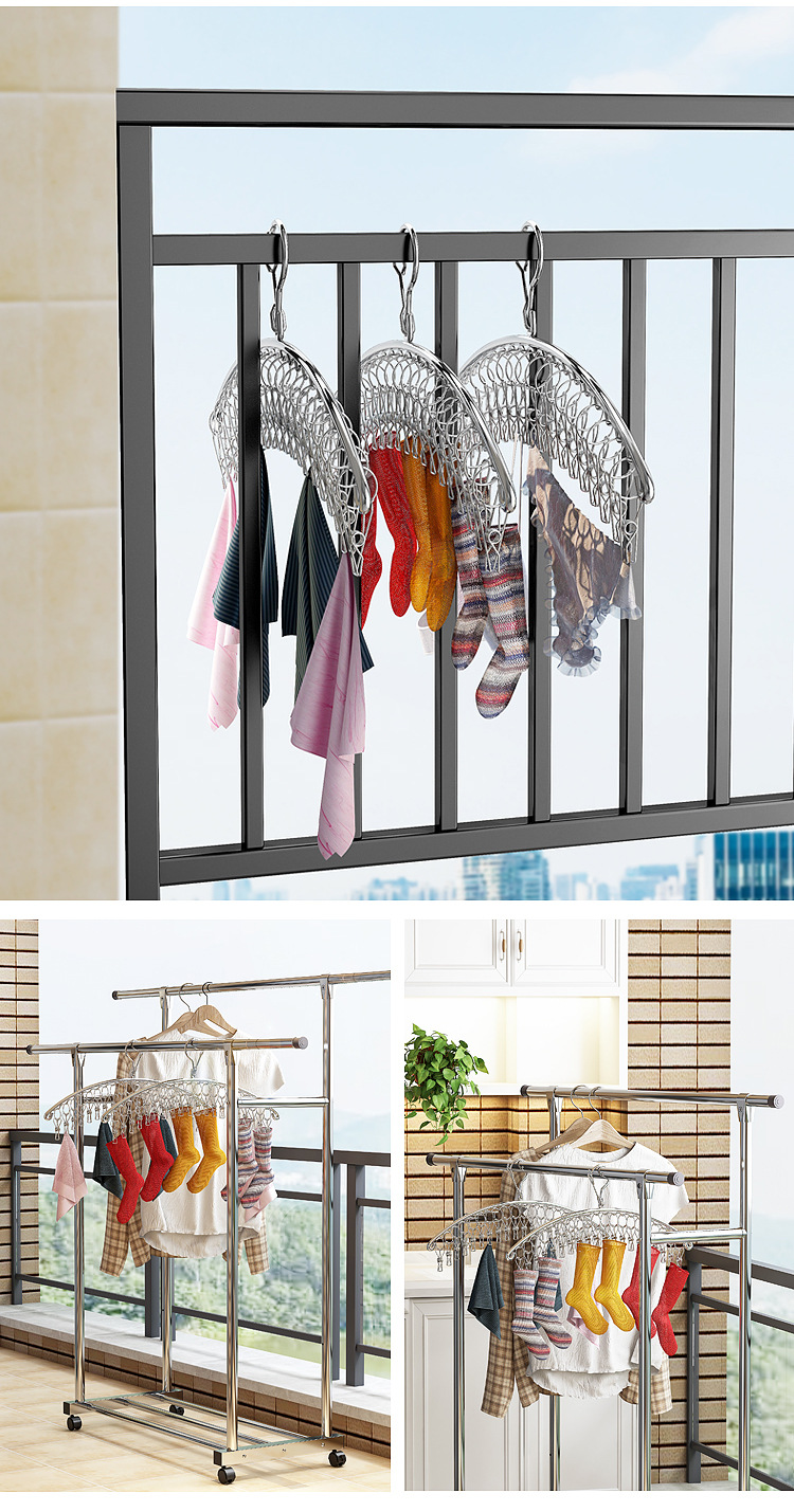 不锈钢袜子晾晒架多夹子家用阳台凉内衣内裤神器学生宿舍防风衣架