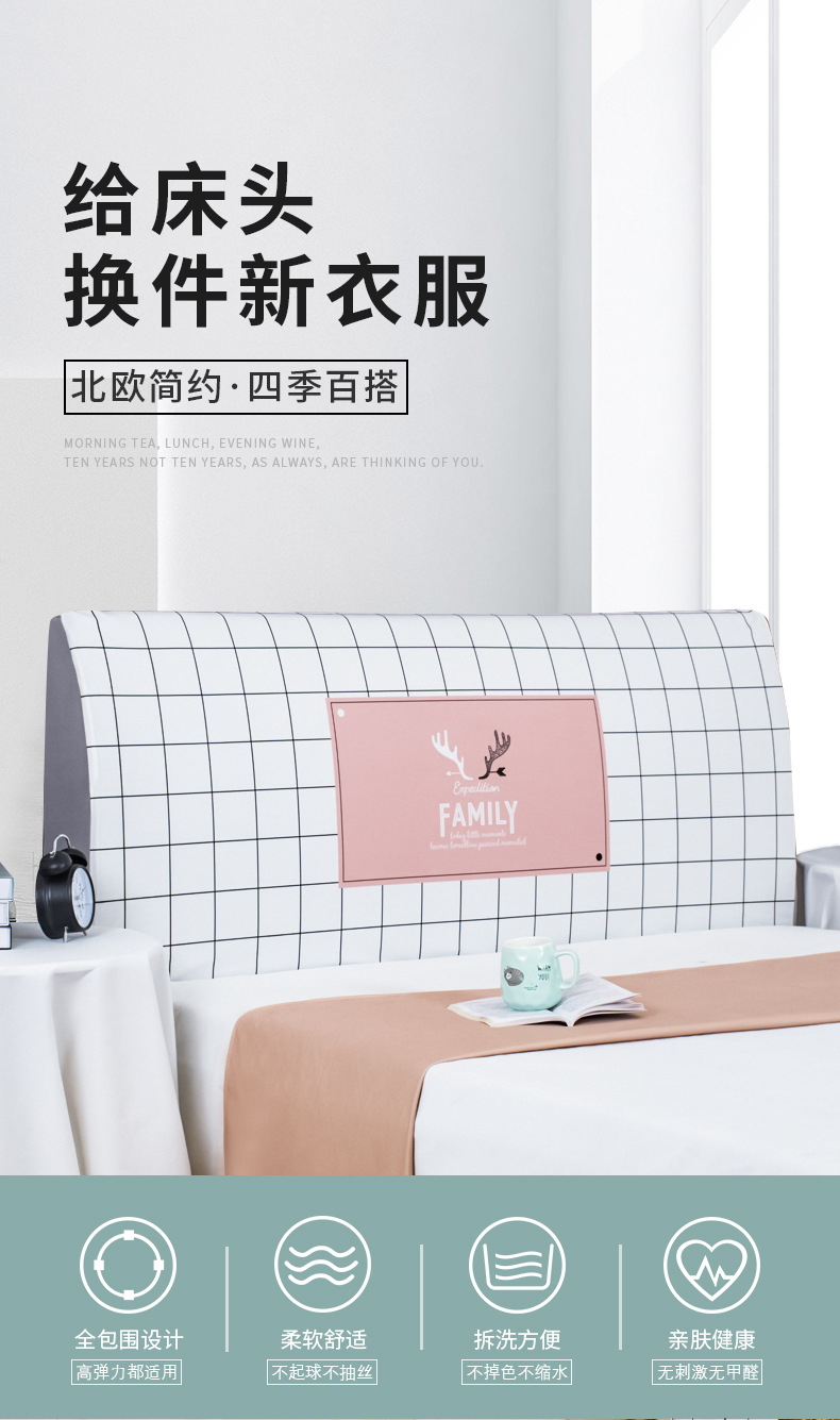 四季通用床头保护罩弹力透气防撞防尘罩加厚软包简约现代床头罩