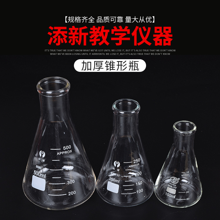 厚いテーパーボトル三角フラスコ250ml 500ml 100ml耐高温フラスコ厚いガラステーパーボトル