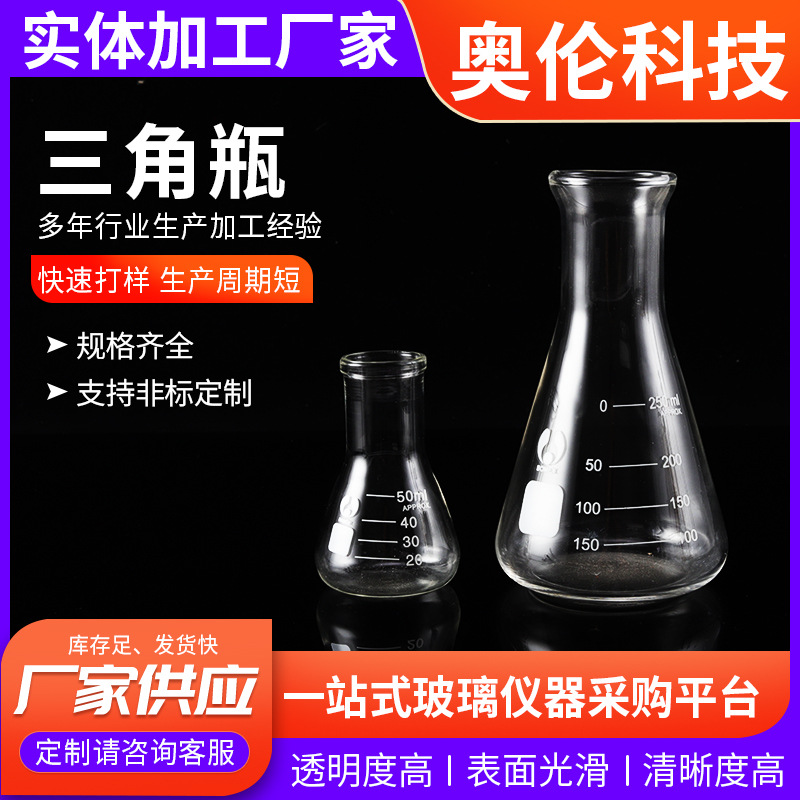1121大口錐形瓶直口三角フラスコ無標スケールフラスコ50/100/150ml卸売りカスタム