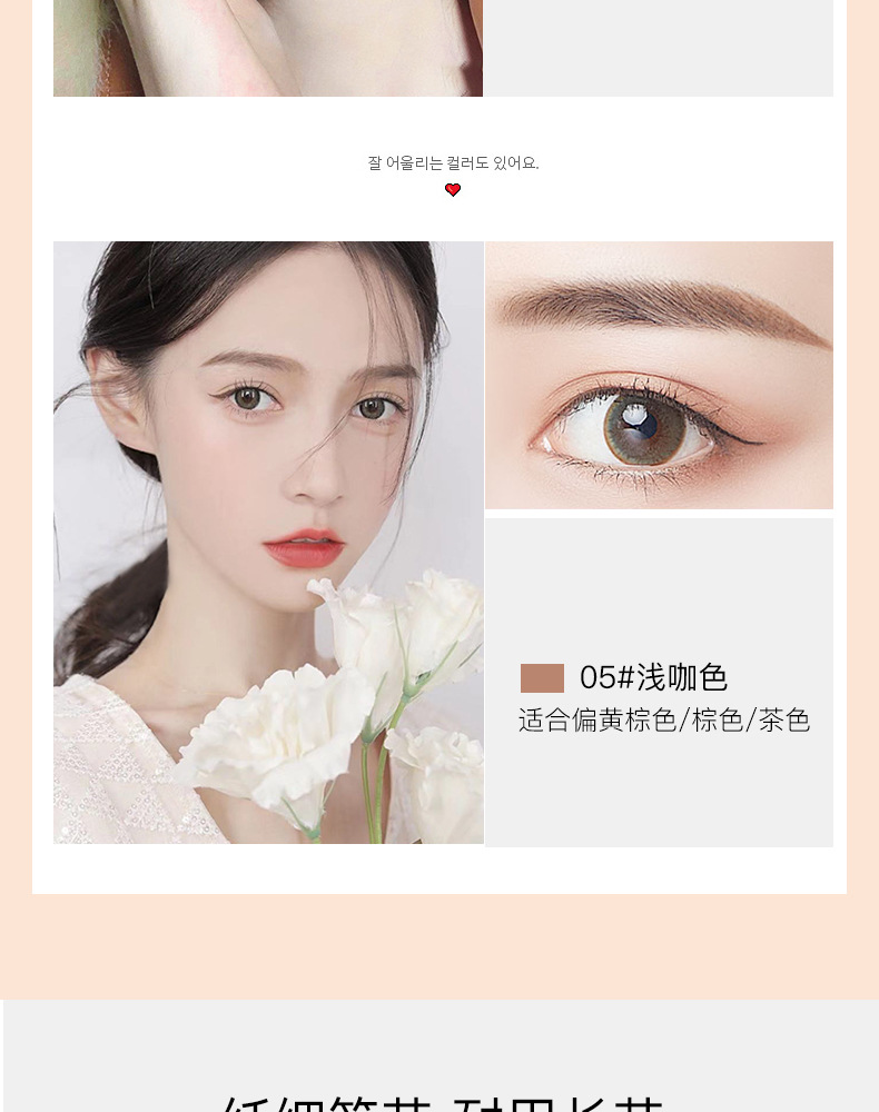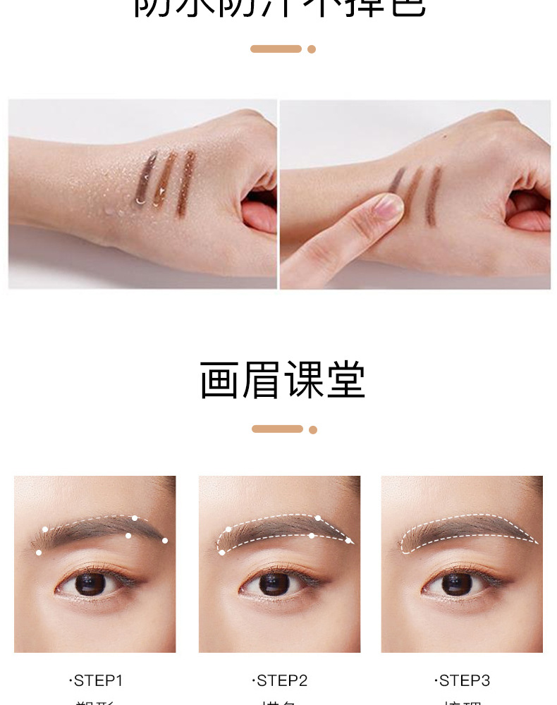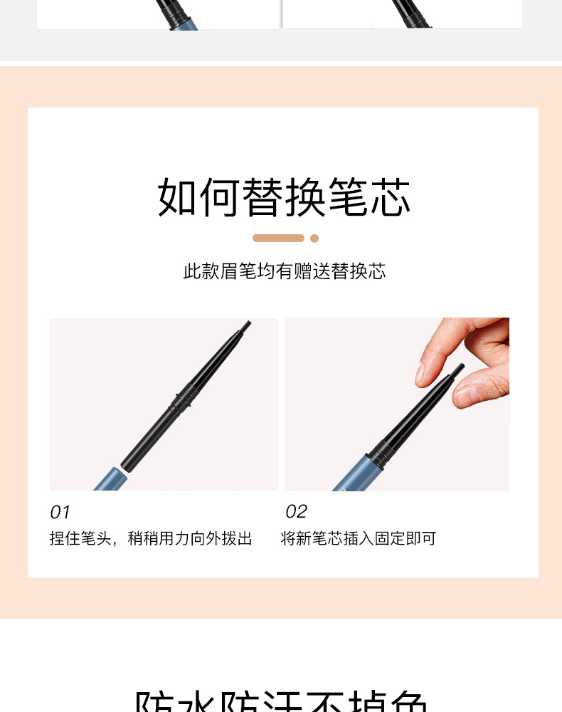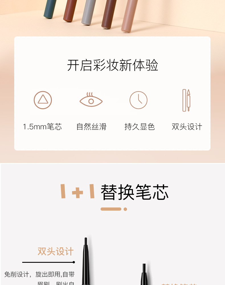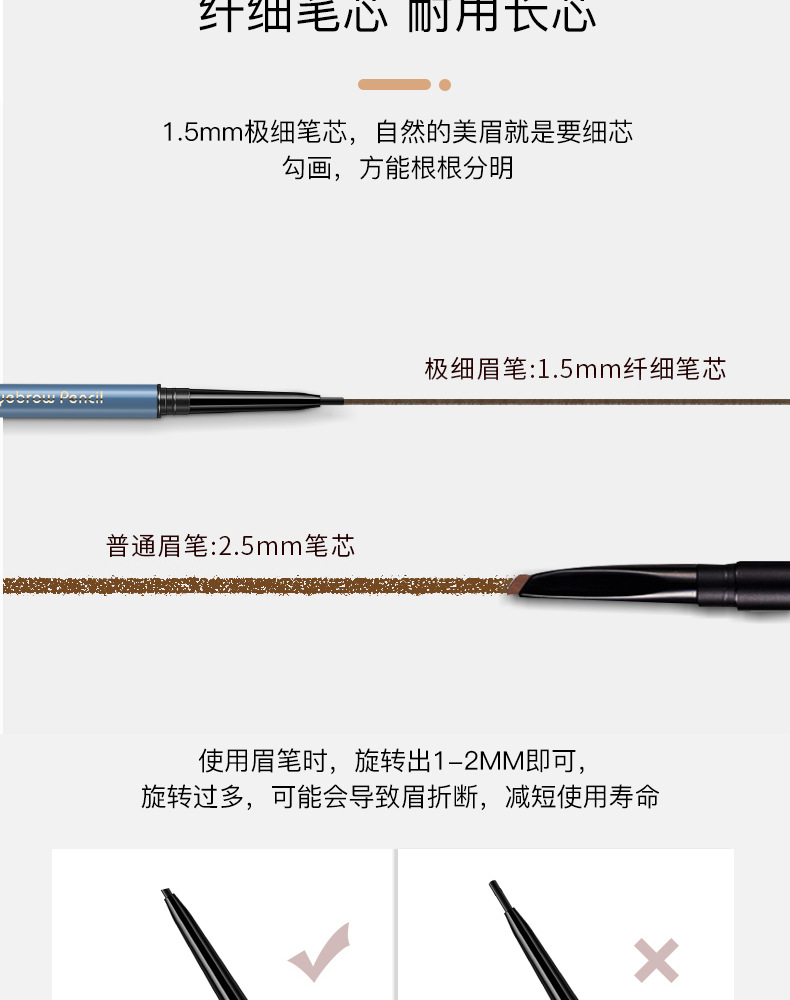 極細両頭アイブロウペンシル、防水、にじまない、色持ちが良い、落ちにくい、自然な眉、根元がきれいに描ける、眉画りの魔法のツール。