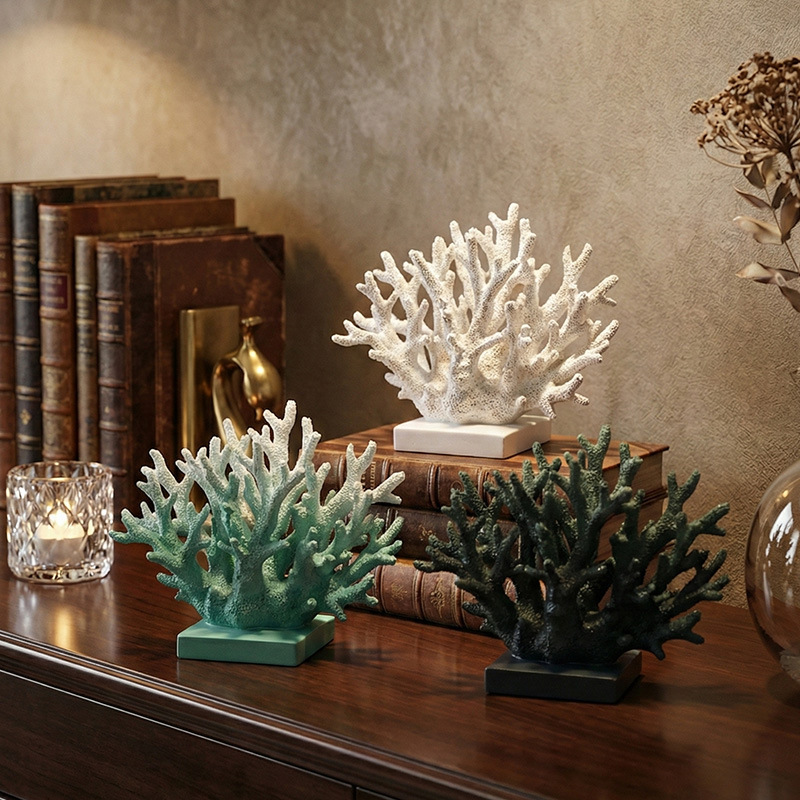 跨境北欧简约仿真树脂工艺品小珊瑚摆件家居客厅电视柜酒柜玄关