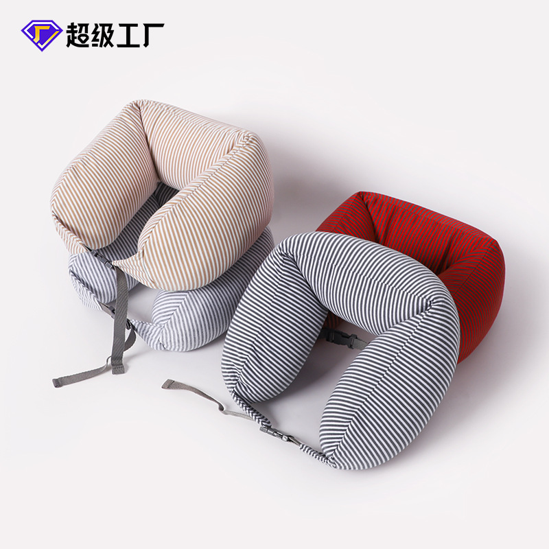 竖条纹日式纯棉粒子枕便携旅行u型枕旅行坐车飞机护颈枕腰枕颈枕