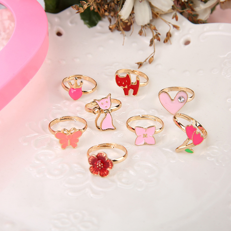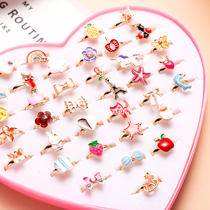 子供用アクセサリー 合金製 漫画風子供用指輪 可愛くて美しいミックスデザイン・ミックスカラー ランダム詰め合わせ 楽しい指輪