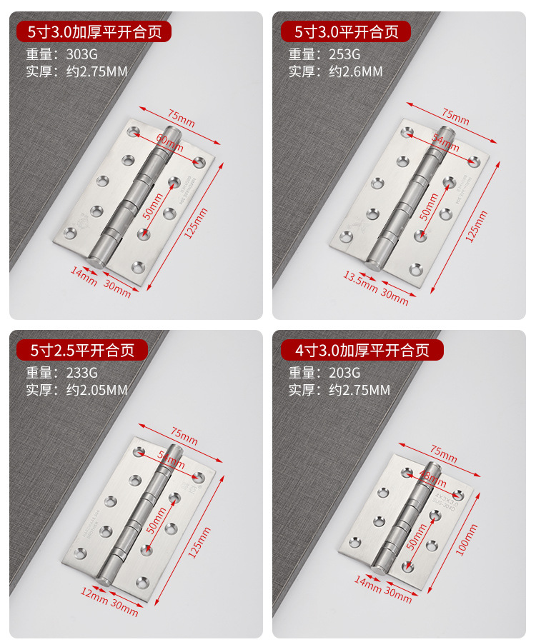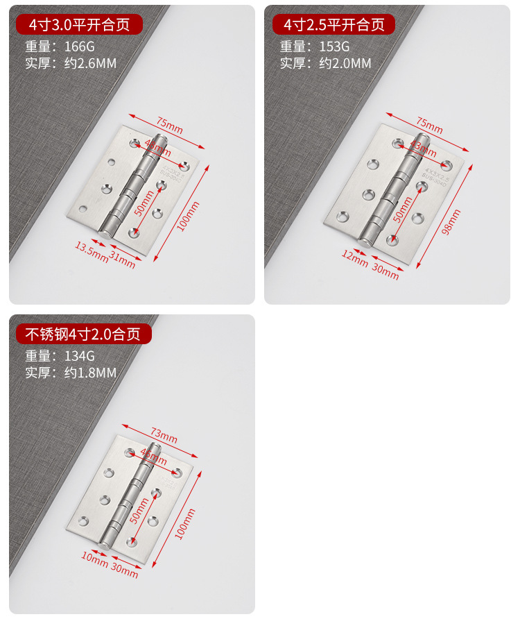 304ステンレス平開合ページ3インチ4インチ5インチ寝室のドア軸受合葉静音増厚木門折りページ