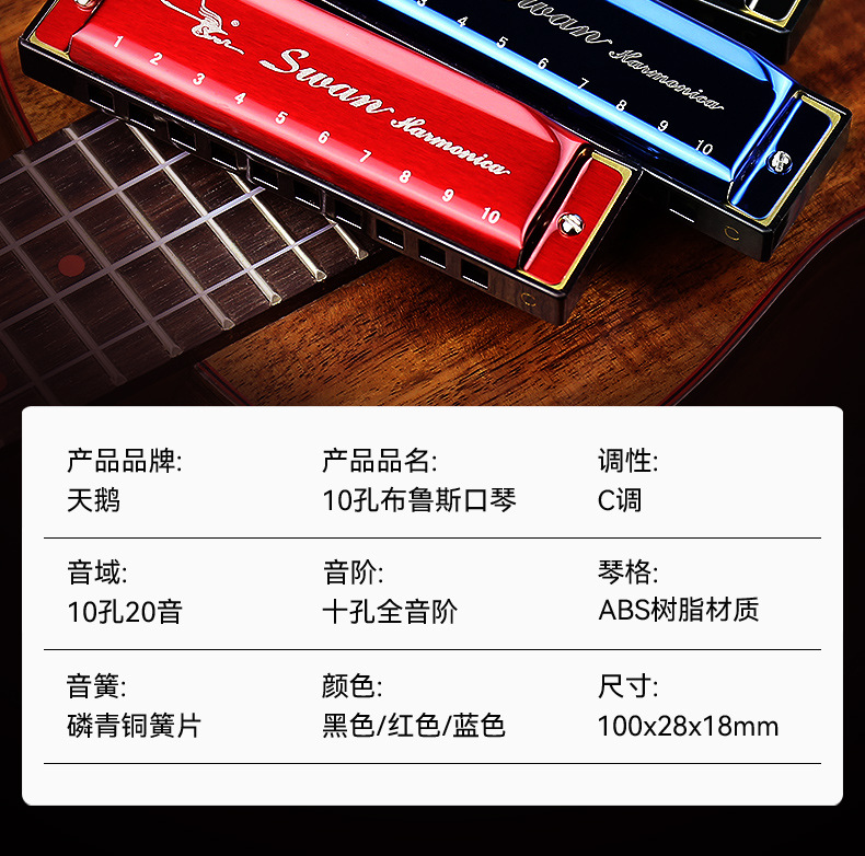 正規品ハクチョウハーモニカシルバー10穴c調ブルースハーモニカ初心者プロ演奏十穴入門楽器