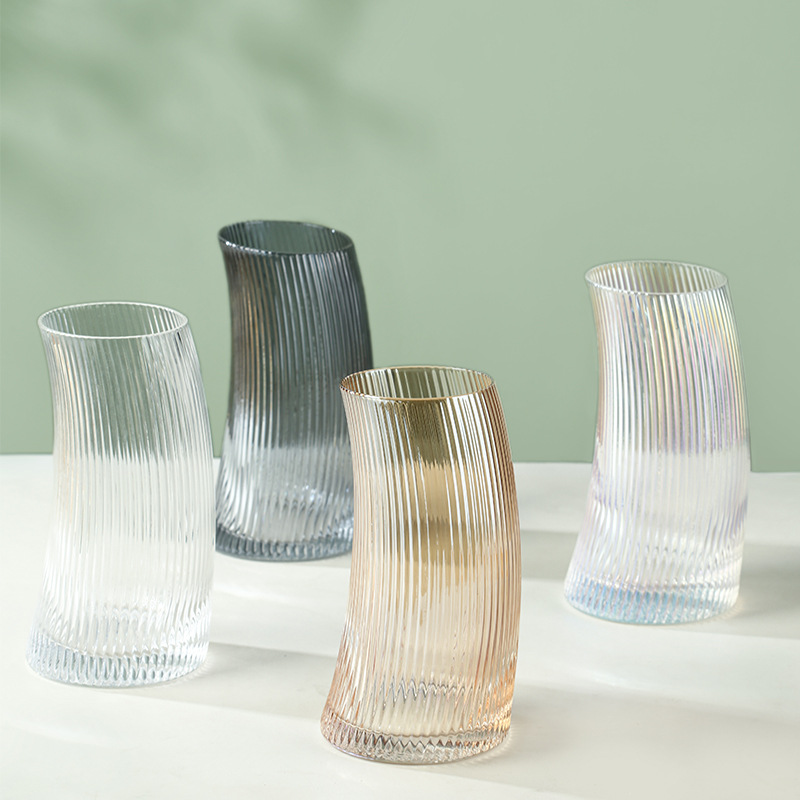 北欧風異形グラス三日月杯ストライプ風帆杯牛角杯創意ジュースカップバーカクテルカップ
